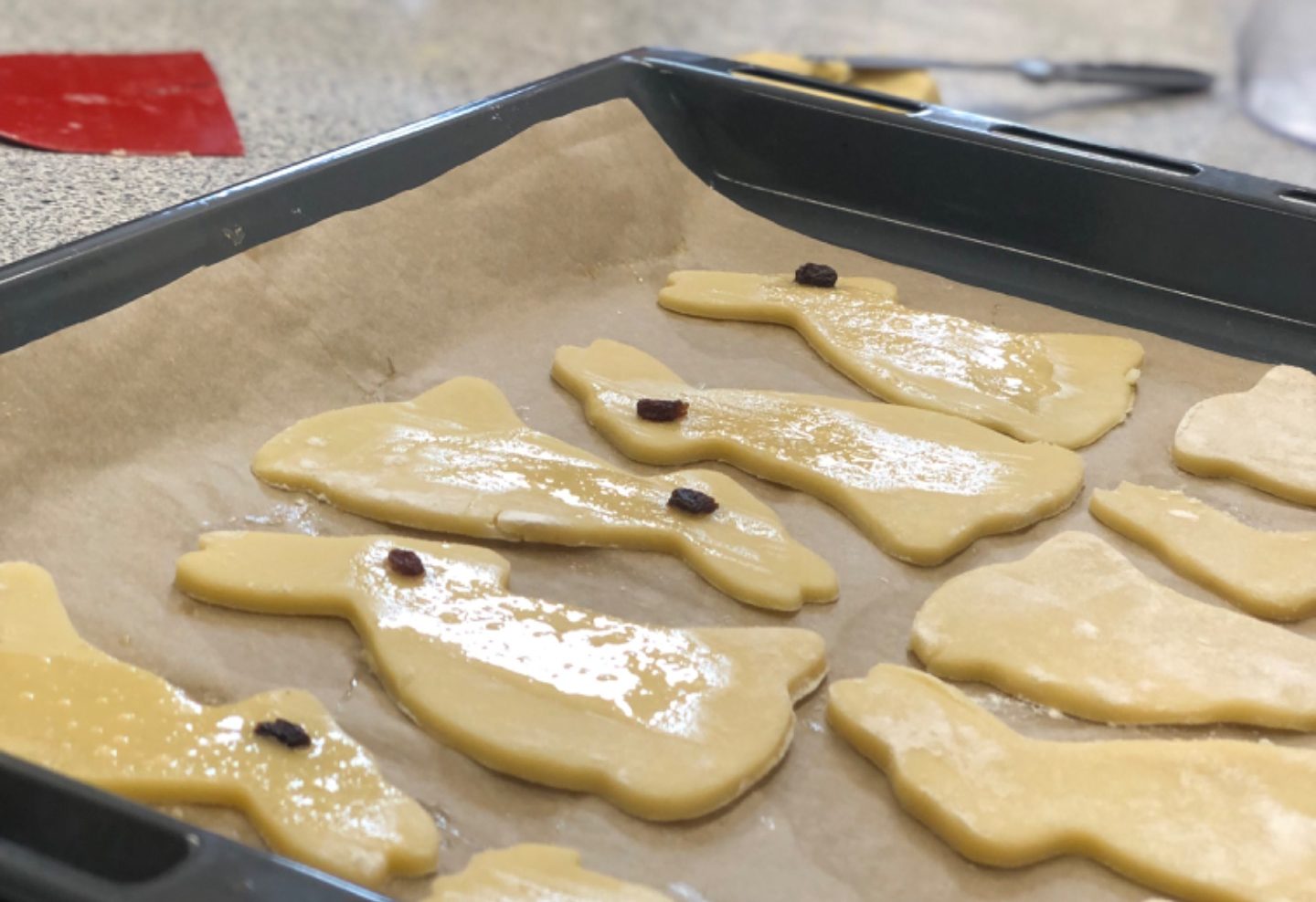 Wahnsinnig viele und leckere Osterkekse sind vergangenen Mittwoch beim Osterbacken der SMV entstanden. Die kleinen Köstlichkeiten wurden am Donnerstag und Freitag in den Schulpausen für den guten Zweck verkauft und zahlreiche Kinder und Lehrkräfte haben sich die kleinen Häschenkekse schmecken lassen!