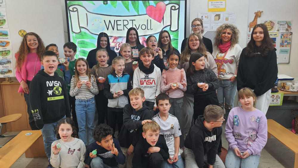 Die Wertebotschafterin der WSR und ihre Teamkollegin sowie ihrem Kooperationsteam der Realschule Eltmann besuchten vergangene Woche die Grundschule Wasserlosen und verbrachten dort zwei wertvolle Stunden. Zuerst wurde die Bedeutung des Begriffes „Wert“ wiederholt, anschließend wurden Werte