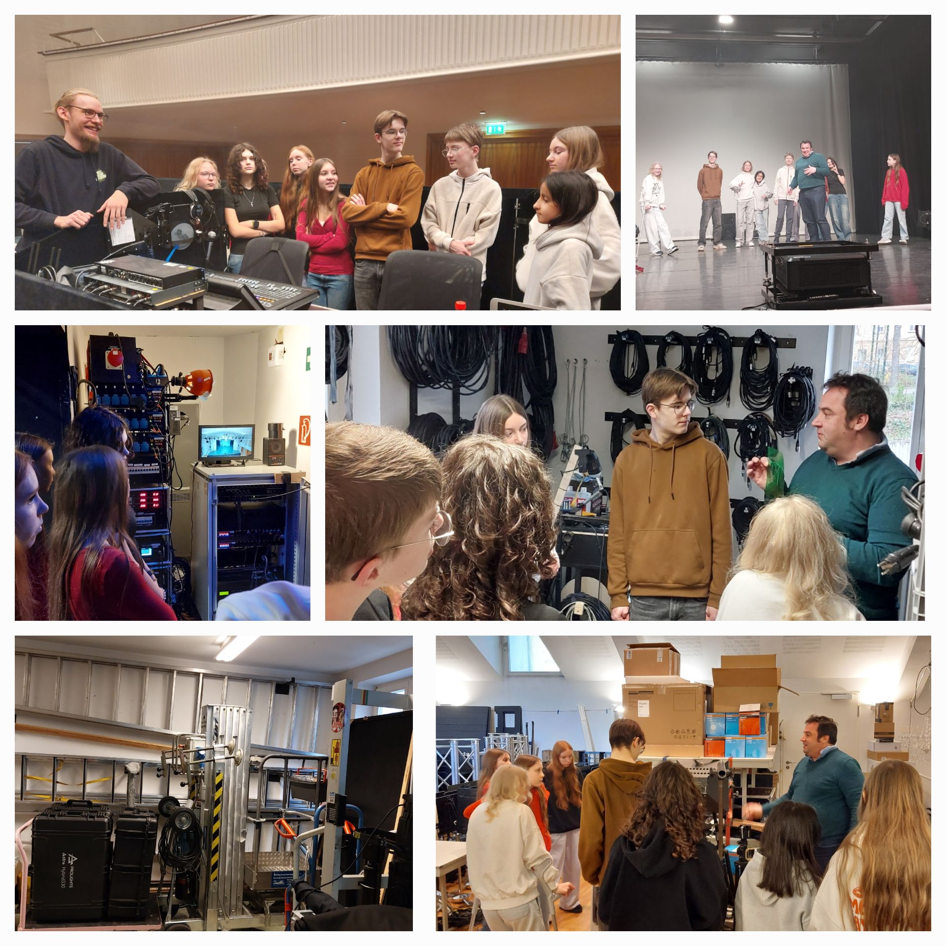 Unter der Leitung des erfahrenen Theaterintendanten Dr. Christof Wahlefeld bekamen die Schülerinnen und Schüler einen Einblick in die Arbeitsweise ihres Bereichs. Besonders der Blick hinter die Kulissen und die Perspektive über die „Rampe“, den Bühnenrand, war spektakulär.