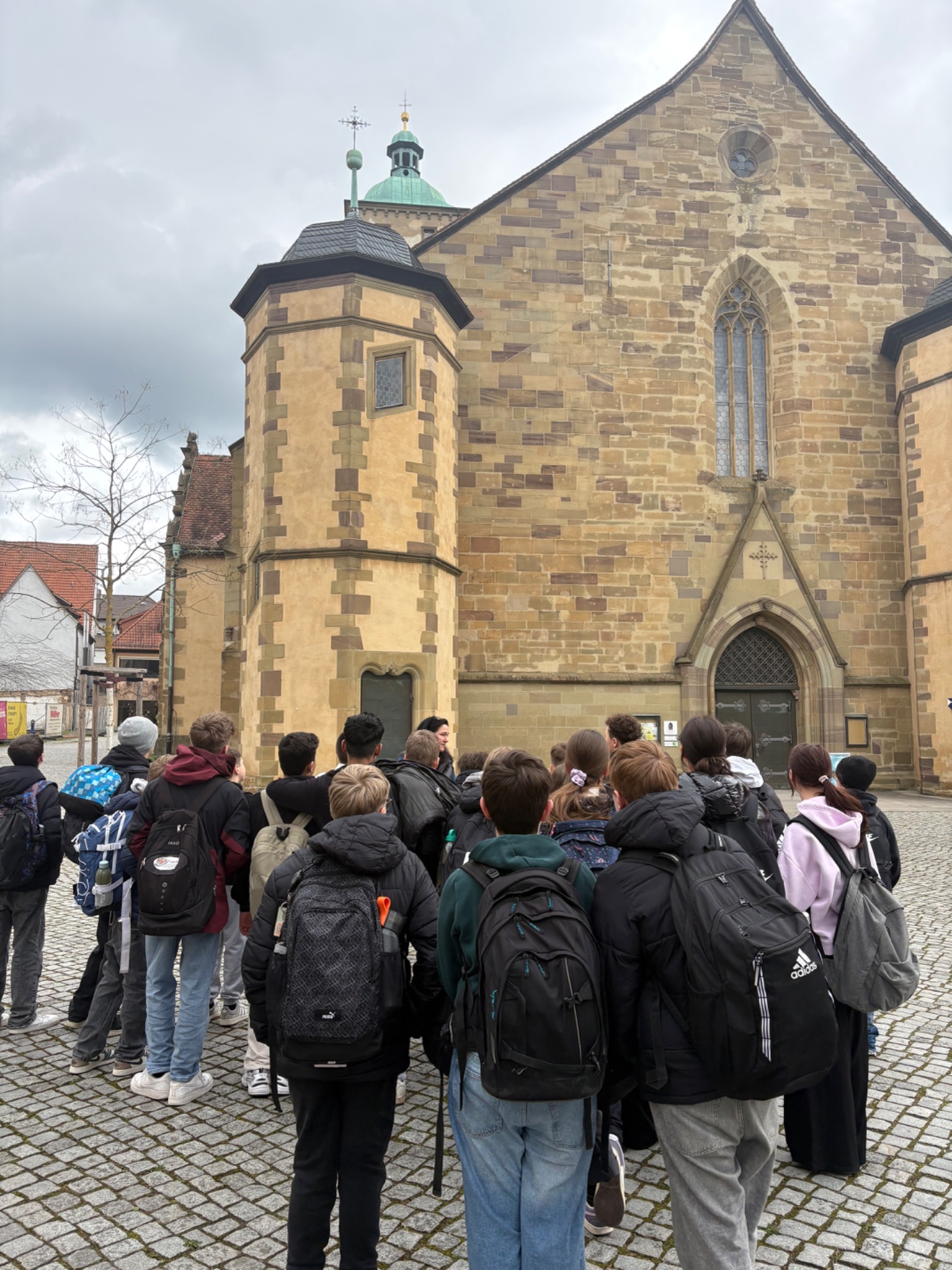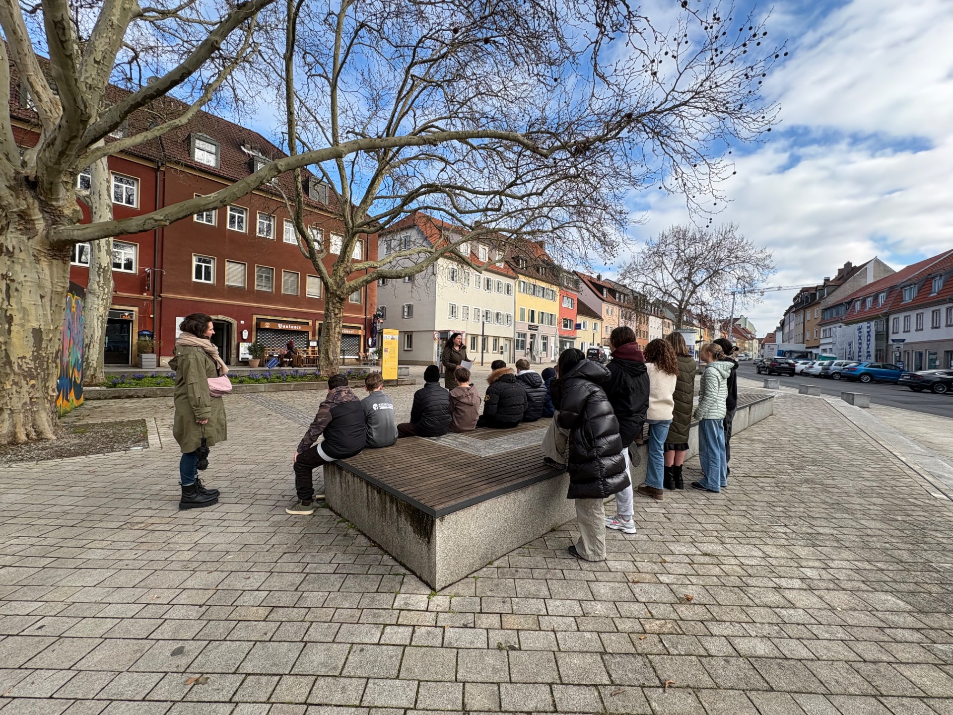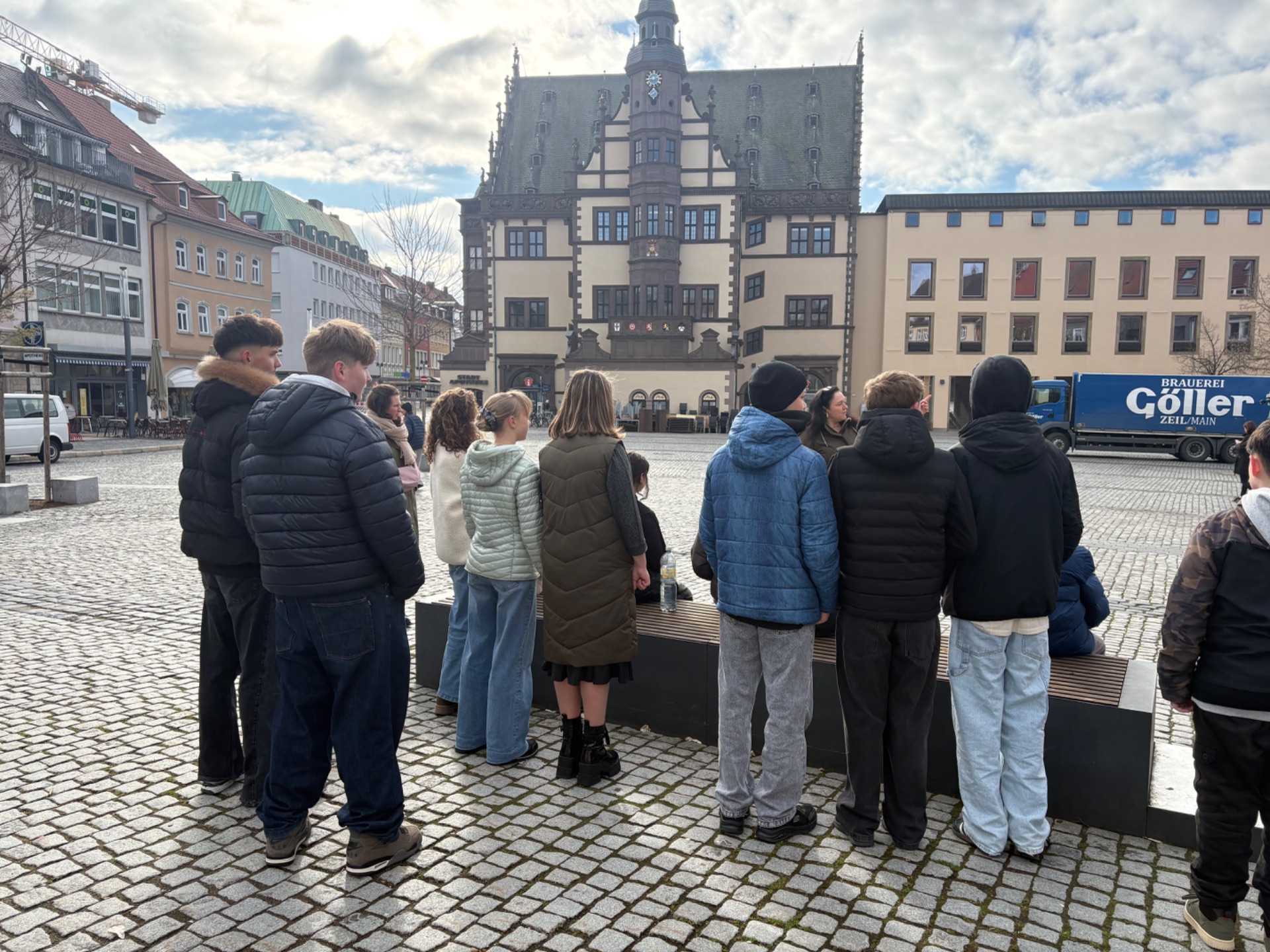 Die Klassen 7a, 7d und 7e begaben sich daher gemeinsam mit unserer Sekretärin Kathrin Grimm auf eine spannende mittelalterliche Entdeckungstour durch Schweinfurt. Dabei erhielten wir faszinierende Einblicke in die Geschichte unserer Stadt und erkundeten zahlreiche historische Überreste vor Ort.